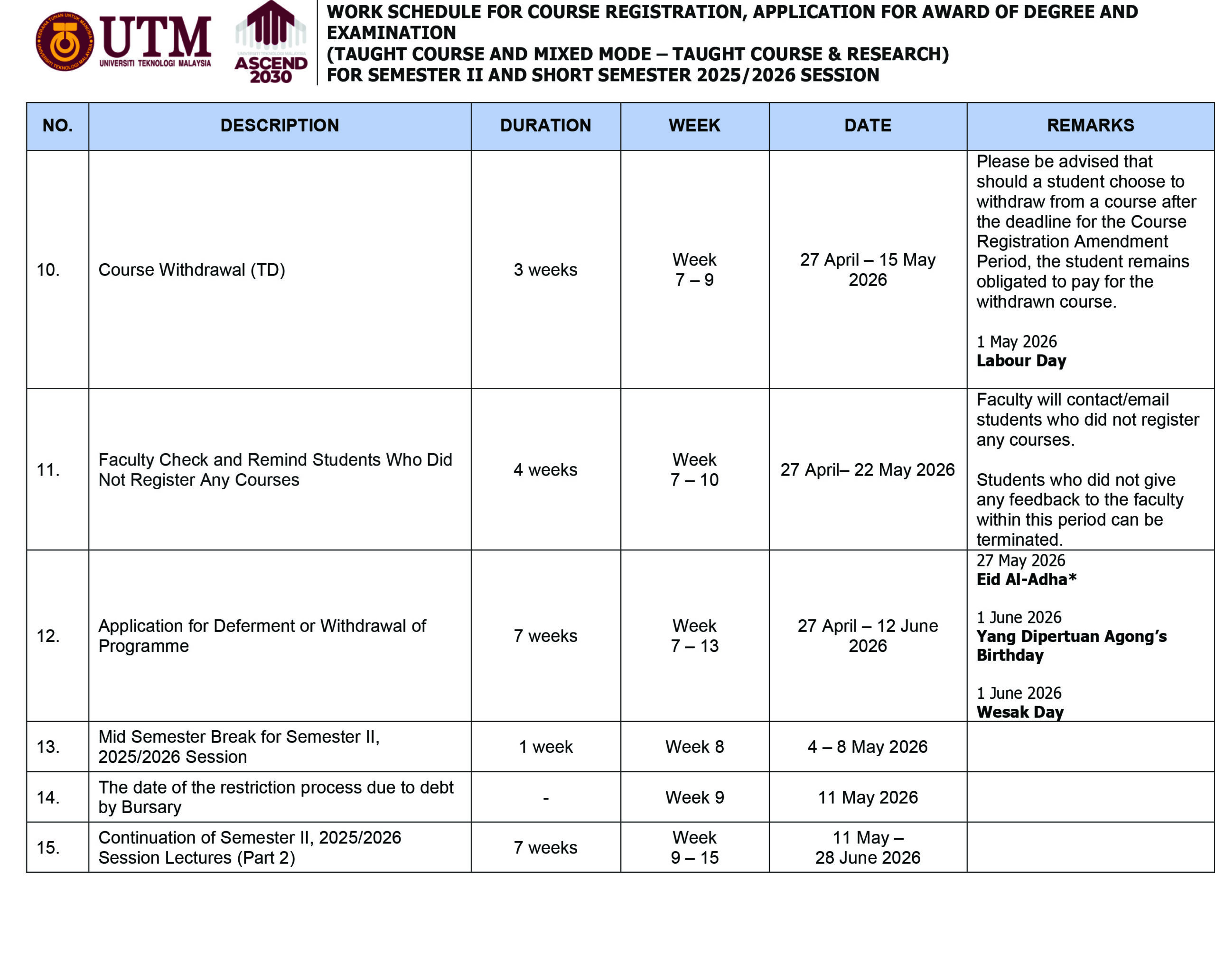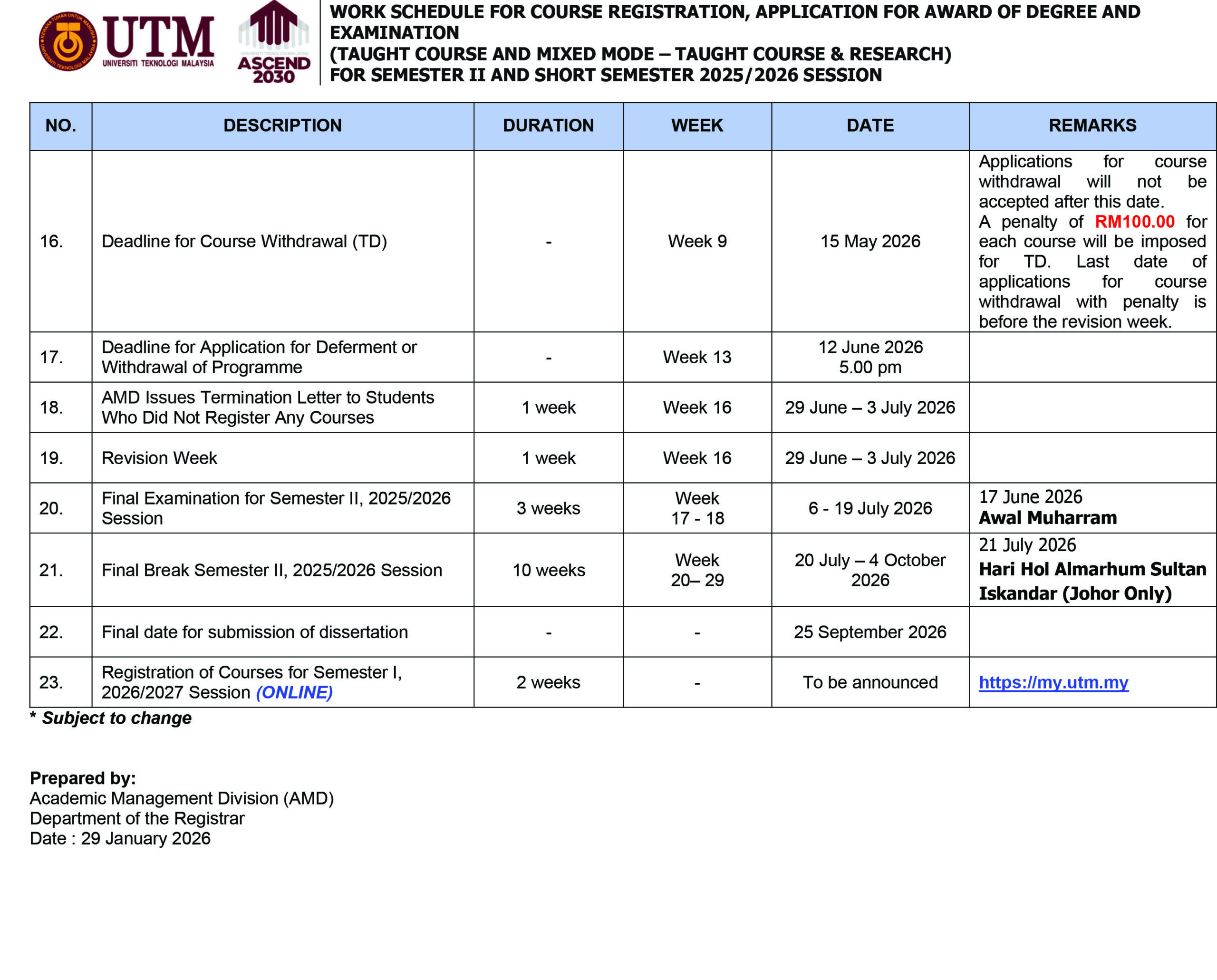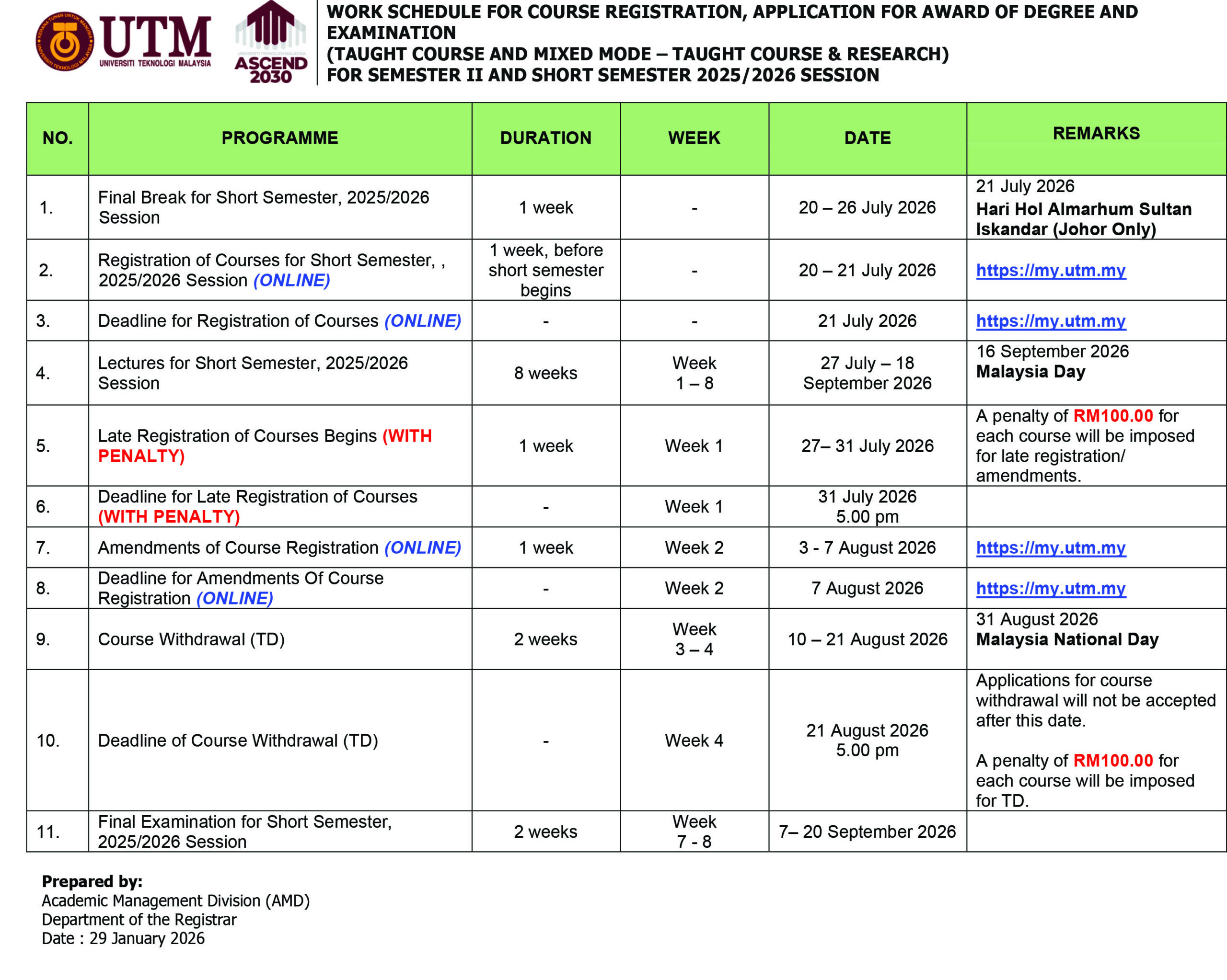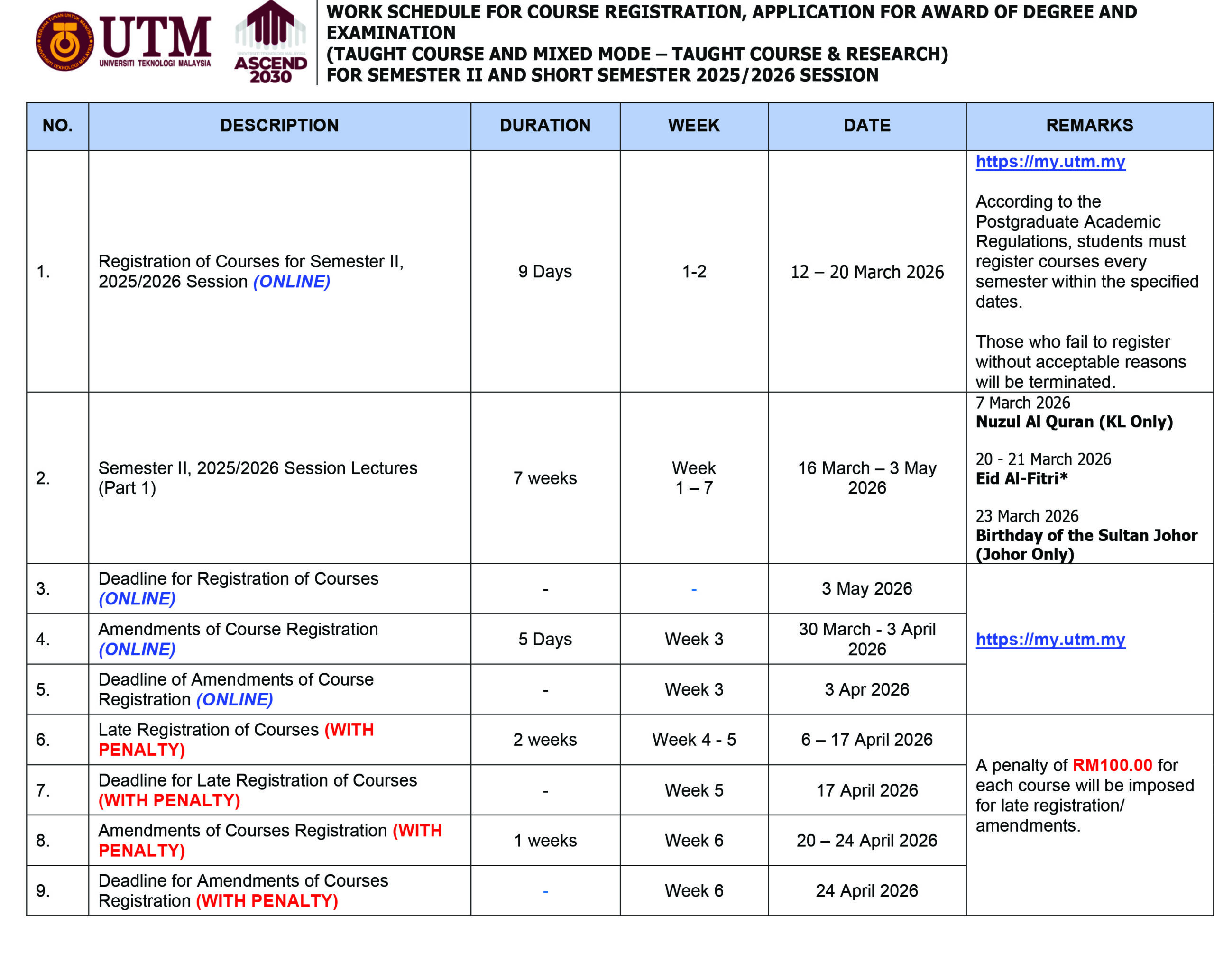 UTM OPEN AND DISTANCE LEARNING IMPORTANT DATE FOR NEW STUDENT REGISTRATION SEMESTER II 2025/2026 New