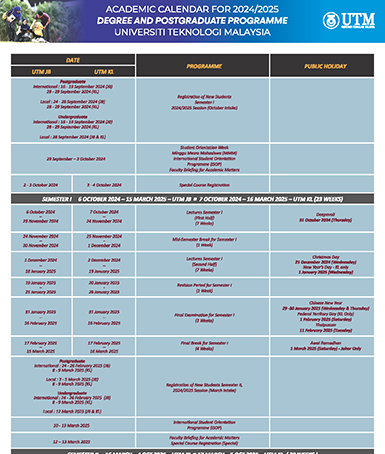 Students who meet the requirements for graduation will be awarded their degrees through the University Senate. The convocation ceremony will be held at UTM Johor Bahru, Malaysia. Attendance is optional, but distance learning students are welcome to visit the university, meet fellow graduates, and celebrate their success.